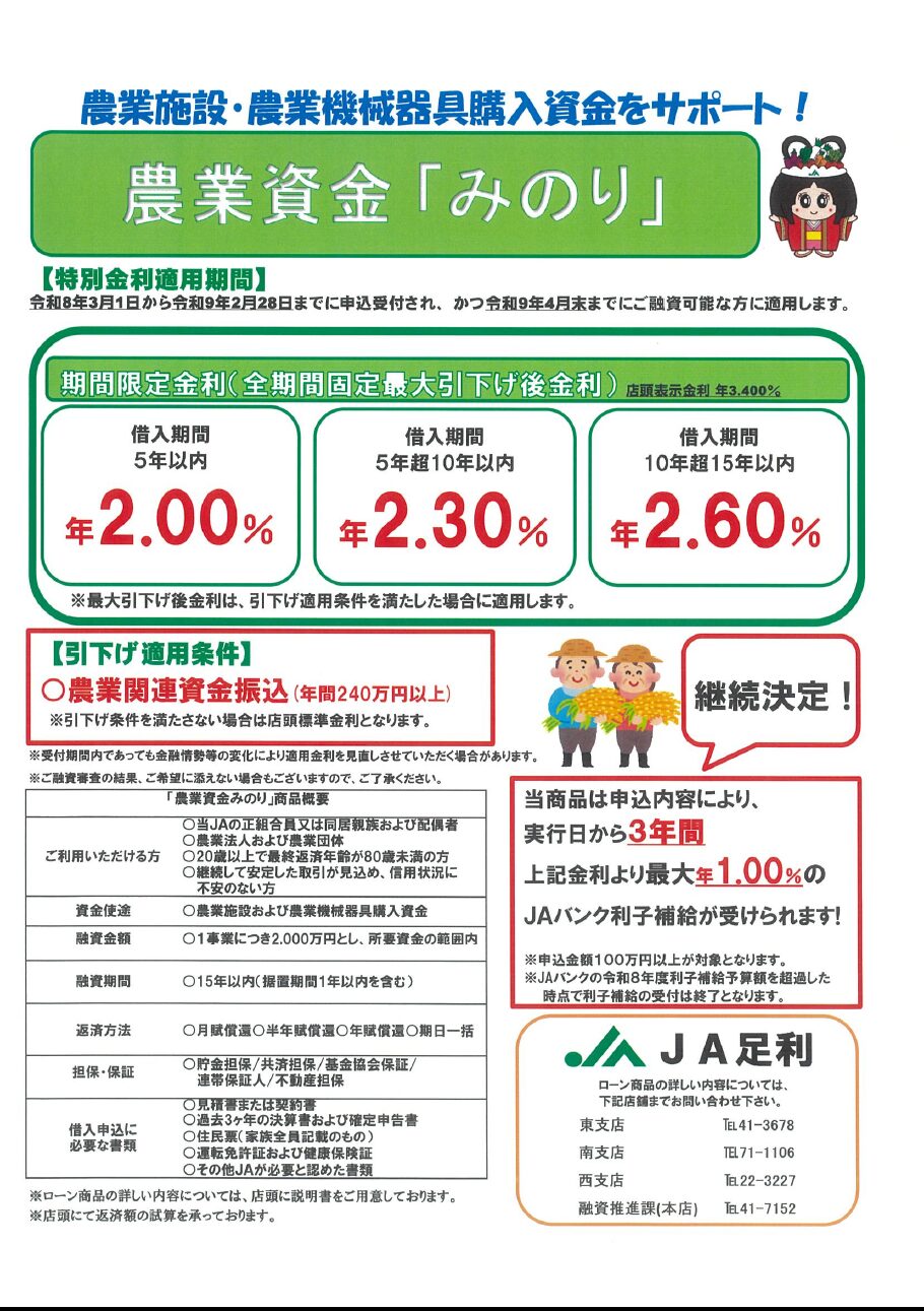 JA足利をご利用の皆さまへのお願い⚫︎